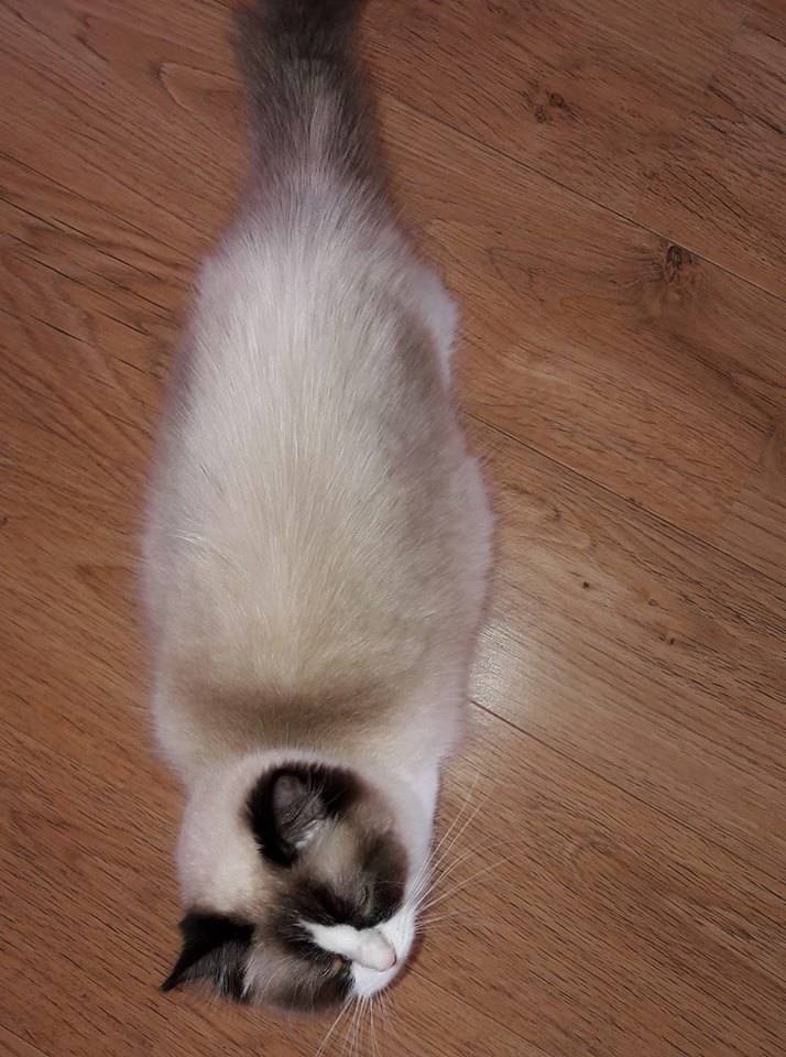 Sheeva is al een dikke kilo aangekomen en ze heeft een hele dikke buik. Ze ligt het liefste op de laminaat vloer. het is nu belangrijk dat ze goed eet en alle ruimte krijgt om te broeden op haar kittens. ze is erg mauwerig en ze komt mij vanaf een uur of 05.00 uur in de ochtend steeds wakker mauwen, als ik niet reageer dan gaat ze gewoon boven op mij staan. Geen idee wat ze wilt want er staat eten en drinken. Schone bak en een krabpaal boven. het wordt wel spannend heveel kittens ze straks heeft. Nog 2 weken en dan gaat ze de 9e week in.