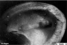 31 dagen. Er komt nu écht schot in! De foetussen groeien hard nu en de meeste "onderdelen" zijn op hun definitieve positie. In de fase 28-32 dagen zijn ze 25 tot 50 mm groot. Over de gevormde ogen groeit een ooglid en er zijn kleine, driehoekige oortjes. In het binnenoor begint de ingewikkelde structuur waar het dier straks mee kan horen zich te ontwikkelen. Op een plaatje lijkt de foetus in dit stadium al op een heus katje. De verbening van diverse onderdelen die nog uit kraakbeen bestonden en waar gewoon been hoort te komen gaat door. Er ontstaat een blaas en bij vrouwelijke foetussen vormt zich de baarmoeder.