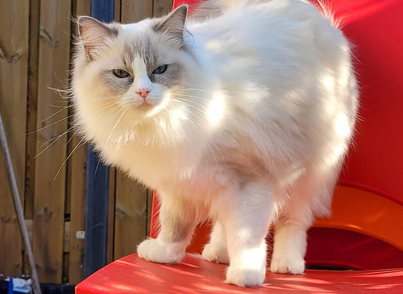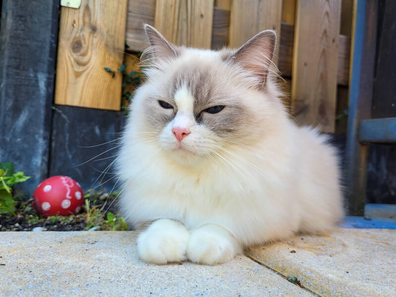 Fay geniet net als de rest van het mooie weer in de tuin. Daar waar ze voorheen hielp bij de verzorging van de kittens van Abby is ze nu heel chagerijnig naar alles en iedereen. Daaraan wist gelijk dat de dekking geslaagd was. Nu lekker gaan broeden op de kittens.
