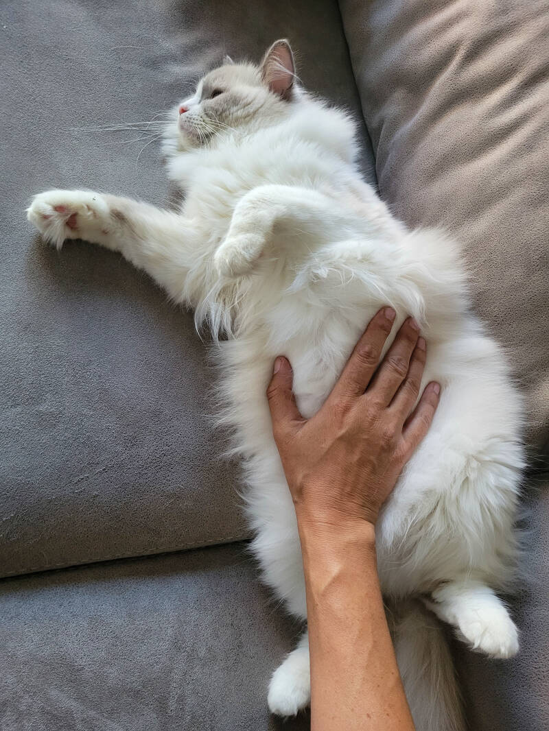 Fay haar buikje begint nu wat te bollen. De tepeltjes voel je groter worden. Ze is nog lekker sjaggie tegen de andere katten. Maar verder zo lief voor mij. Ze komt heeelijk bij mij liggen en dan lekker kroelen..